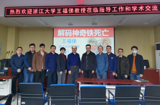 在报告会上,王福俤教授首先针对自己的研究工作简单介绍了铁、锌等微量元素稳态的研究现状及进展。随后,铁对人体重大慢病防控的重要性。最后,转铁蛋白(hepcidin-ferroportin)轴对铁稳态的调控以及铁依赖的非凋亡的新型细胞死亡方式——铁死亡。王福俤的报告严谨而幽默,用三国演义中的刘、关、张阐述了铁死亡网络相互作用的关系,并通过对自己多年科研人生以及所获得的学术成就的讲述,鼓励大家对学术课题要深入了解,专心研究,争取把自己的研究工作做到最佳。此次报告激发了广大师生的浓厚兴趣,极大拓展了学院师生的视野。报告结束后,与会师生积极提问,都得到了王教授认真细致的解答,并纷纷表示受益匪浅。