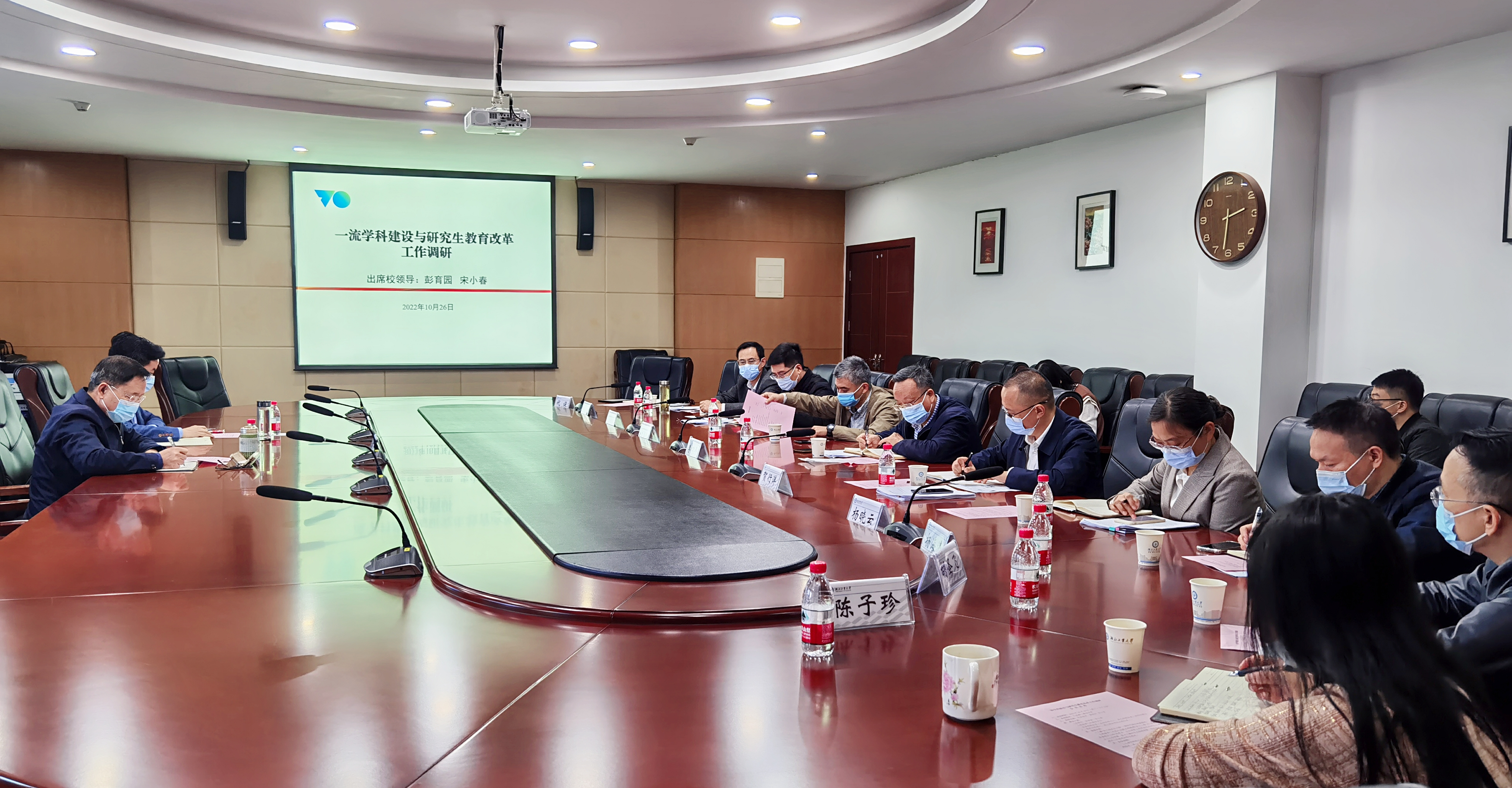 10月26日下午,学校一流学科建设与研究生教育改革工作调研座谈会在行政楼三楼会议室举行。校党委副书记、校长彭育园出席会议。校党委常委、副校长宋小春主持会议。