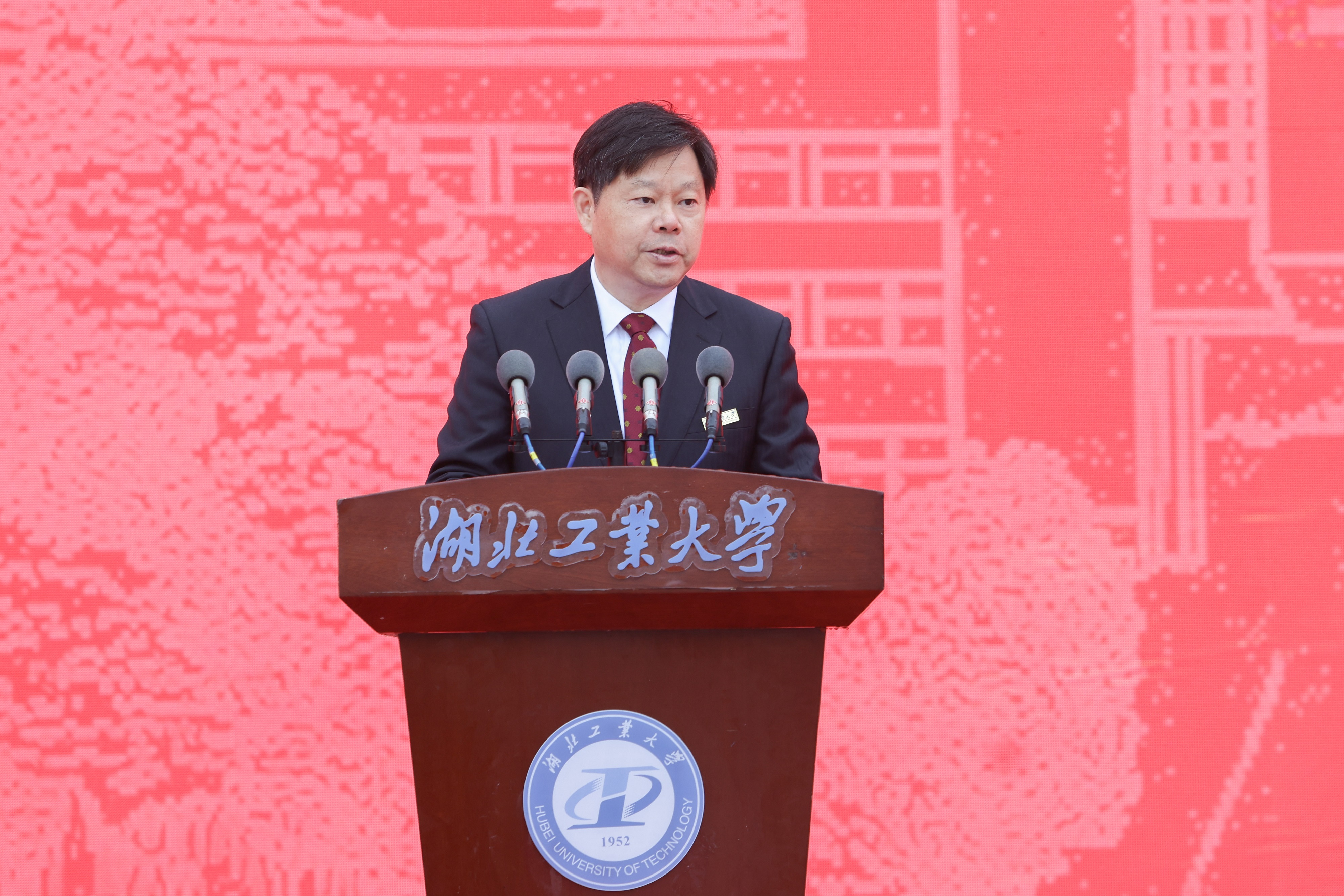 王红玲发表讲话。她指出,湖北工业大学为湖北高等教育事业作出了积极贡献,在湖北经济社会发展中发挥了重要作用。她希望湖北工业大学以建校70周年为新起点,坚持以习近平新时代中国特色社会主义思想为指导,主动服务国家和湖北发展战略,坚定办学方向,落实立德树人根本任务;找准办学特色,持续推动学校内涵式发展;坚持创新驱动,扛起科技自立自强使命;明确发展定位,坚持服务湖北高质量发展,全力推动学校事业创新发展,加快推进“双一流”建设,实现跨越式发展。