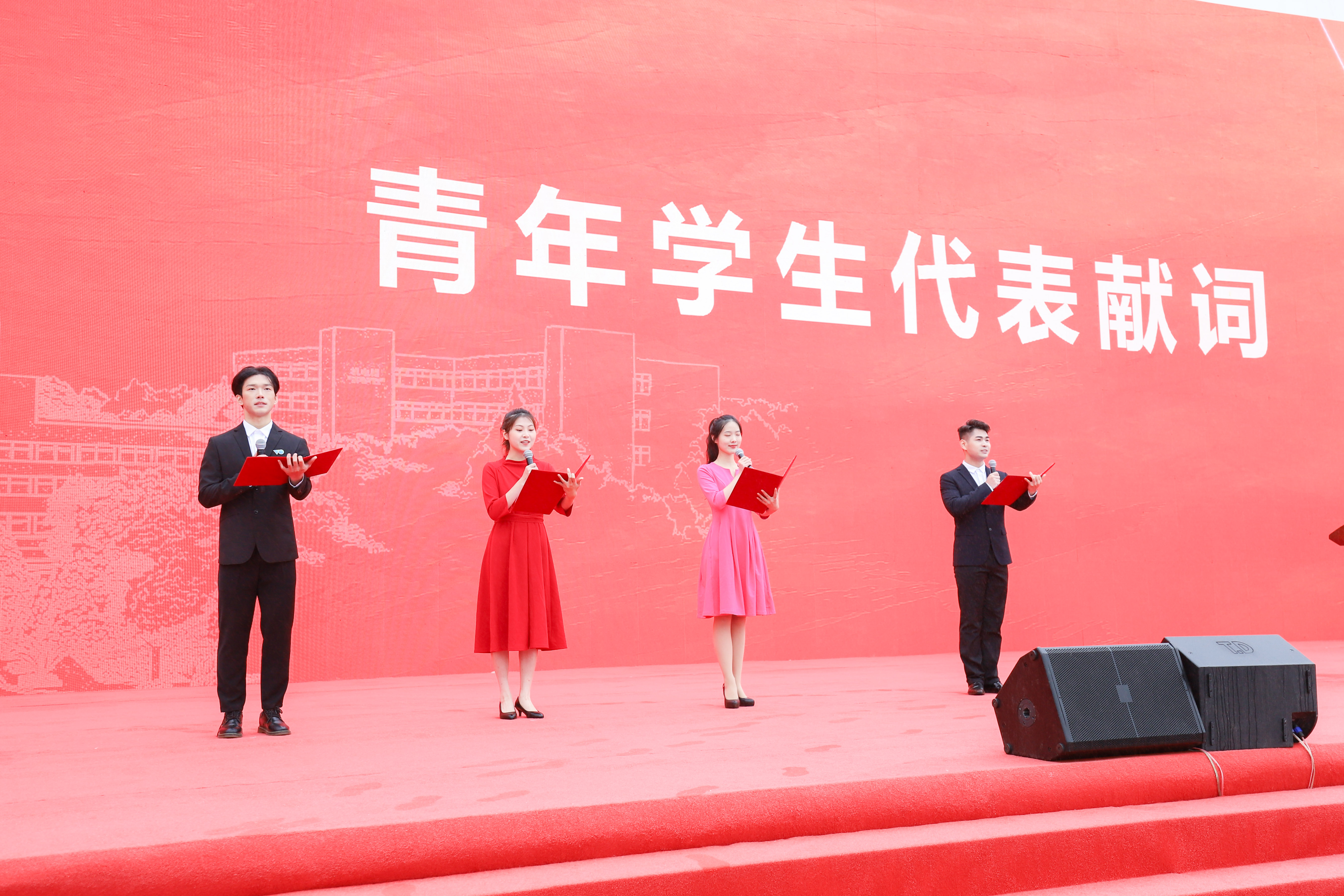 “是湖工大,铸就了我们共同的理想;是湖工大,放飞了我们青春的激昂。”青年学生代表们集体献词,表达对母校70周年华诞最真挚的祝福和青春荣校、奋斗强国的坚定决心。“喜迎二十大,永远跟党走!礼赞七十年,奋进新征程!请党放心、强国有我!爱校荣校,校强我强!”的誓言字字铿锵、掷地有声,展现出新时代湖工大青年学生时刻以一往无前,时不我待的劲头和主人翁姿态,共同创造属于我们每一位湖工大人崭新历史的青春昂扬风貌。