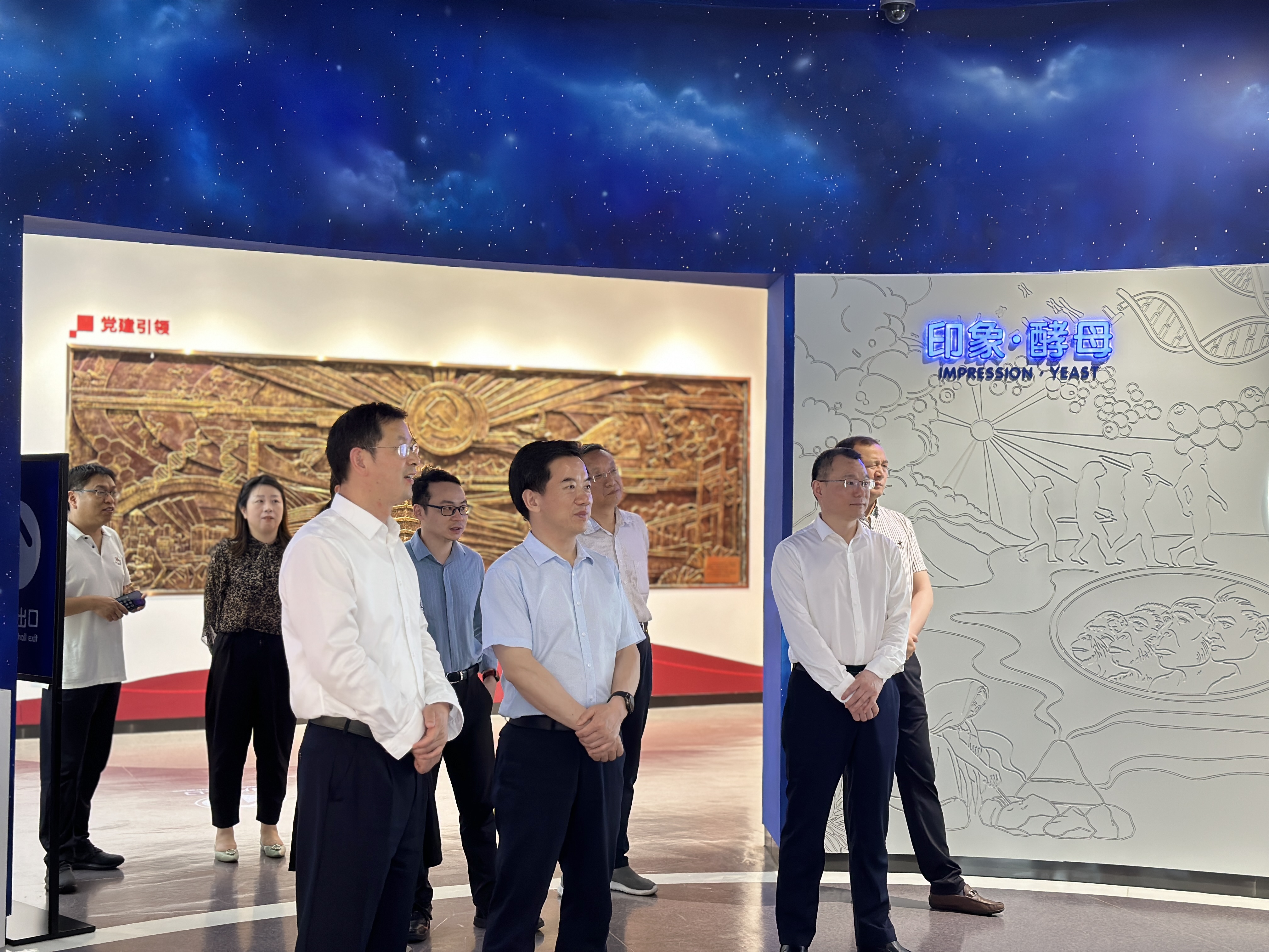 在安琪酵母总工程师覃先武的引导下,一行人参观了酵母科普和公司产品展示馆,细致了解了公司运行和发展情况。