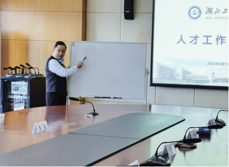 彭育园指出,五个理念包含:湖工大命运共同体理念、人才发展共同体理念、人才是第一资源理念、人才兴校理念、人才生态建设理念。我们要构建湖工大命运共同体理念,强调学术至上、学者为大,依靠人才发展共同体给与支撑,其核心在于人才兴校。我们要牢固树立办大学办教育人才是第一资源的理念,推动构建良好的人才生态环境,一要充分遵循人才成长规律及其个性特质,将学术思维和管理思维同步融入人才培育体系中,让管理型人才了解教学科研规律,让学术型人才熟悉行政管理要求,从而突破认知局限,实现终身成长;二要注重为人才发展营造良好的氛围,办大学就是办氛围,一所好的大学注重为人才发展营造良好的文化氛围、科学氛围、人文氛围等,要以管服并重的思维妥善处理管理与服务的对立统一关系;三要着力解决人才队伍存量的活力和提升问题,强化人才引育并举,重在人才的培育、服务、使用以及梯队建设,盘活存量,做大增量,进一步改善层次和结构,激发释放三支队伍活力。