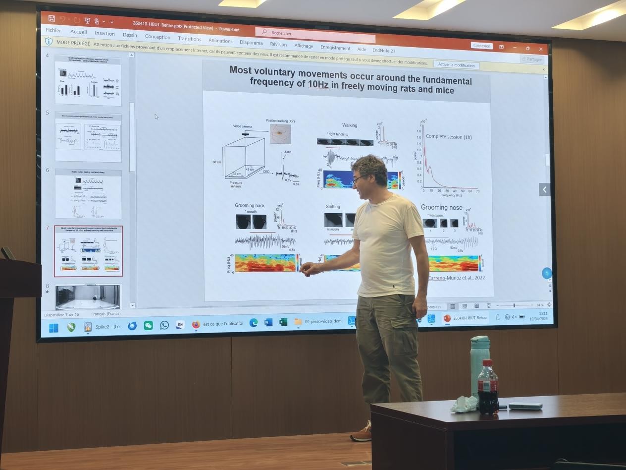 Xavier Leinekugel为师生们分享了题为“A new device to detect small movements in freely moving rats and mice”的学术报告。报告围绕“压电式无创行为监测系统”的提出背景、研究进展和技术应用等三个方面进行。针对传统动物行为监测需侵入操作、主观评分偏差大、无法同步量化行为与微观生理指标的行业痛点,该监测系统应运而生,致力于解决Rotarod、CatWalk等传统方法难以实现自由活动动物自然行为与生理信号同步精准监测的难题,为神经科学、精神疾病相关研究提供客观高效的技术手段。该系统以压力/压电传感器捕捉动物微小振动、结合视频追踪为核心原理,搭建起抗振台、多传感器、高速相机与分析软件一体化的硬件架构,目前已完成多维度监测技术研发与多模型实验验证,实现了宏观行为、微观生理及情绪反应的同步量化分析,精准建立不同行为与压电信号的对应关系,在自闭症、瑞特综合征等神经发育障碍模型,以及恐惧焦虑、睡眠监测等研究中取得一系列关键实验成果,验证了技术的可行性与指标有效性。